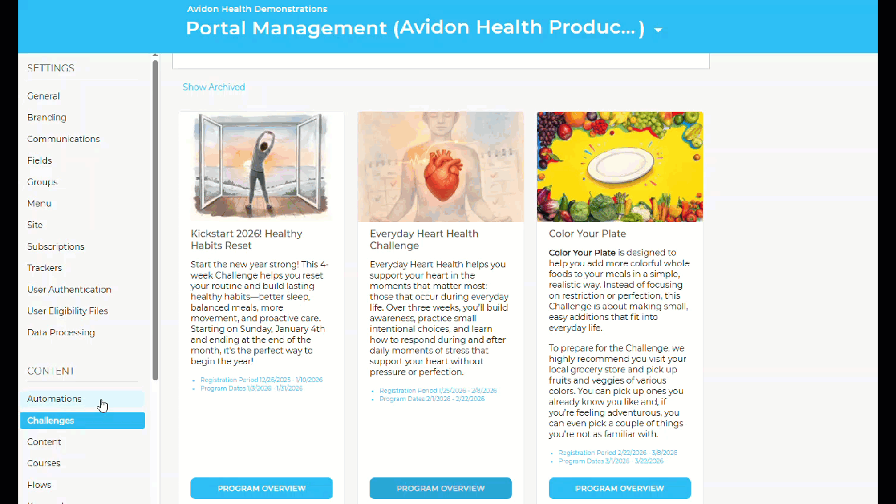 The year is off to a strong start with Avidon’s 2026 Challenge Autopilot, our streamlined system for year-round engagement. With one Challenge scheduled each month, Autopilot keeps members moving forward toward better health habits, all with minimal setup required.