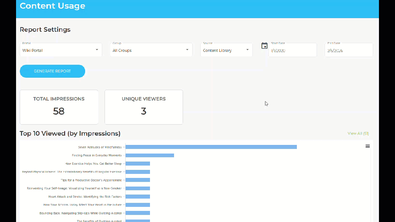The Content Usage Report in the Admin Portal will be enhanced with new unique viewer analytics to provide a clearer view of true member engagement. Alongside total impressions, admins will see total unique viewers, top content ranked by distinct viewers, and viewer trends over time.